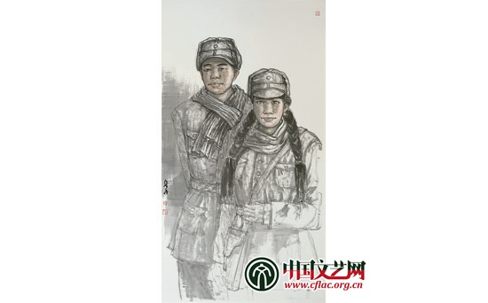 同为广州美术学院毕业的陈粤丹性格壮阔豪性,作画激情奔放。同陈勇一样,他既画山水,也画人文。《青春之歌》是他2015年的得意之作,作品以两位知识青年在战争年代的形象为主体构成。在作品中,两位青年穿戴破旧的八路军服饰,脖子上围着沾满灰土的围巾,从那古铜色的脸庞上,依稀可见战争年代的艰苦卓绝。女青年头上两条黑油油的马辫和男青年的文质彬彬,反映了他们的单纯和稚嫩,但从他们坚定的眼神中,可以看见他们坚定的理想和信念。作品色彩简约,笔触细腻,意涵丰富,较好地体现了作品的主题,该作入选广东省高校美术作品展。