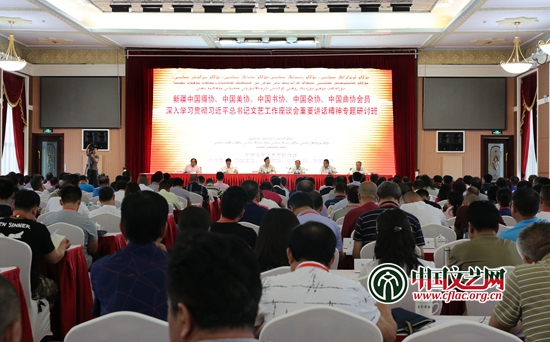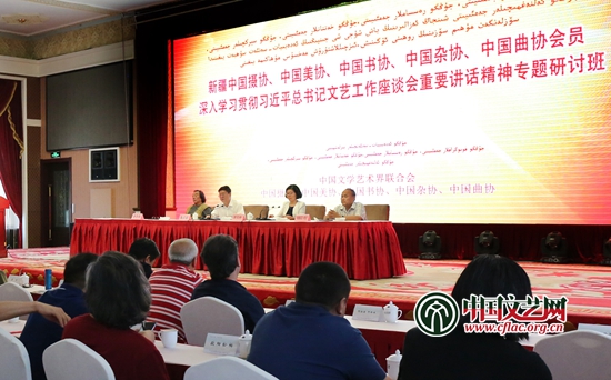 7月24日至27日,由中国文联、中国摄协牵头,中国摄协、中国美协、中国曲协、中国书协、中国杂协共同主办的新疆籍会员深入学习贯彻习近平总书记文艺工作座谈会重要讲话精神专题研讨班在新疆维吾尔自治区乌鲁木齐市举办。全国政协委员、第九届中国文联副主席夏潮,新疆维吾尔自治区党委常委、宣传部部长田文,中国摄协主席王瑶,中国摄协分党组成员、副秘书长彭文玲,新疆维吾尔自治区文联党组副书记阿拉提·阿斯木,新疆维吾尔自治区文联党组成员、副主席张君超,新疆维吾尔自治区文联党组成员哈德别克·哈汉,中国摄影家协会副主席、新疆维吾尔自治区文联副主席、新疆摄影家协会主席李学亮等出席研讨会。来自新疆各地区的270余名各全国文艺家协会会员和文艺骨干参加了研讨班。阿拉提·阿斯木主持开班仪式,李学亮作动员讲话。