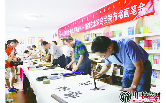 在为期一周的慰问活动中除了演出外,还包括五场笔会活动,来自北京的耿军、虞晓勇、郭凤金、郭孟祥、张平子、韩清茂、汪港清等书画名家挥毫沷墨,或紫藤萝花,或山水小品,或喜鹊登枝,或写下“草原明珠”“物华天宝、人杰地灵”“福寿康宁”等,表达了美好的寓意。