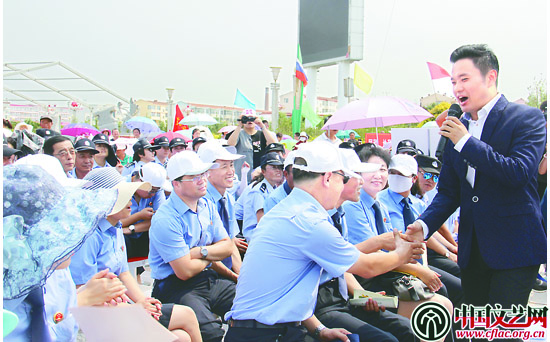 7月20日上午,在乌兰察布市集宁战役纪念馆广场上,已经连续演出三场的演员们在台上丝毫看不出疲倦,他们的每一个动作、每一句唱词都是那么地优美和准确。青年歌手柏鹤的女声独唱《玛依拉变奏曲》,欢快、热情、活泼;宫政演唱的《父亲》和孔庆学演唱的《妈妈就是我的梦》表达他们对草原上伟大的父亲母亲们诚挚的祝福;闫羽如、孔庆学合唱的《咱老百姓》短短的歌词道出了北京艺术家们的心声,也是他们随北京市文联到内蒙古慰问演出的初衷:“都说咱老百姓啊是那无边的海,大浪淘沙托起那个巨呀巨轮行。天大的英雄也来自咱老百姓,树高它千尺也要扎根泥土中。是好人都不忘百姓的养育恩。”听得观众心里暖烘烘的。李克石和刘然带来的魔术《魔幻时刻》也特别受欢迎,一开场李克石就把自己画在纸上的球掉落到台上成了真正的保龄球;接着他又邀请一位现场观众与他一起完成一个小魔术,观众的一张百元大钞穿越到一个包装袋完好无损的面包里,魔术完成后,这位观众竟然还不清楚其中的窍门。