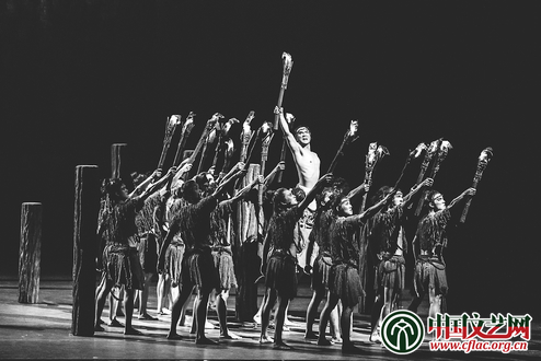 也就是说,我们舞剧创作关注的历史名人之“名”,在大多数情况下聚焦于他们的“为民”——上述《东坡海南》《桃花源记》是如此,周莉亚、韩真创编的《杜甫》和王舸创编的《大禹》也是如此。舞剧《杜甫》由上、下两篇构成,它的“构成模态”,用我的话来说是舞段的“块状组接”。“块状舞段”的转换作为“情境意象”的迁变,虽于客观叙事而言有些许欠严谨,但却很符合主体心境对于往事追忆的特征——通过上篇“求仕行”“丽人行”“兵车行”“难民行”以及下篇“乱世行”“长恨行”“别离行”“农乐行”,舞剧塑造了那个梁启超眼中的“情圣杜甫”,也即“他是个最富有同情心的人……他对于下层社会的痛苦看得真切,所以常把他们的痛苦当作自己的痛苦。”相对于舞剧《杜甫》而言,王舸创编的舞剧《大禹》是一部舞剧首席演绎帝王形象的舞剧,塑造了一个做事不做官、治水不治人、为邦不为家的舞剧人物典型。舞剧《大禹》由六幕构成,分别是《供水》《祭祀》《平患》《离殇》《火攻》《会盟》,通过全面统筹、逐层铺垫、有机结构、有序递进,宏阔而细腻、伟岸而兼恭、决绝而缠绵地表现了巍巍大禹的济世情怀。