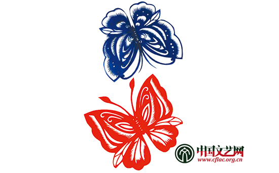 传统的崂山剪纸《窗花蝴蝶》
