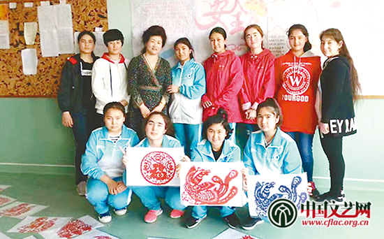 苏霞和来自新疆的少数民族学生在一起