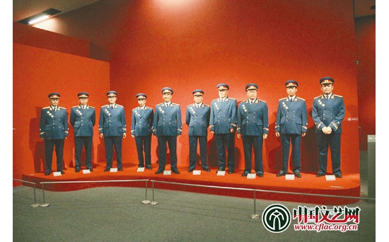 除了文物,展览还展出了“十大元帅”的蜡像。朱德、彭德怀、林彪、刘伯承、贺龙、陈毅等“十大元帅”蜡像吸引了众多观众的目光。这十尊蜡像身高比例与真人一样,形态传神逼真,观众不时发出“真像!”“这些蜡像看上去比真人年轻”的感叹
