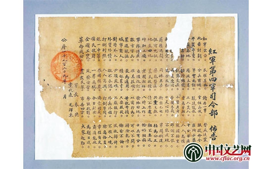 [人民军队] 1929年1月,红军第四军军长朱德、党代表毛泽东联名发布布告,指出红军的宗旨是“民权革命”,即为人民的权利而斗争(图一)。1933年8月1日,中央革命军事委员会向领导南昌起义的负责同志及红军中有特殊功勋的指战员授予红星奖章(图二)……“人民军队”部分主要展示了由中国共产党缔造的这支人民军队,如何以星火燎原之势,终成百万雄师的成长历程。