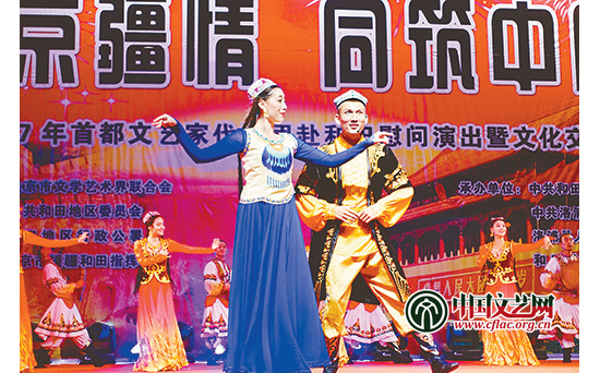2017年8月12日至20日,北京市文联主办的“共话京疆情 同筑中国梦”首都艺术家赴新疆文化交流慰问活动在新疆和田地区、伊犁哈萨克自治州等地举行,共进行了7场演出和8场笔会。深受当地群众欢迎。
