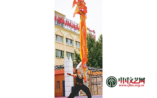杂技演员冯文武表演杂技《中幡》