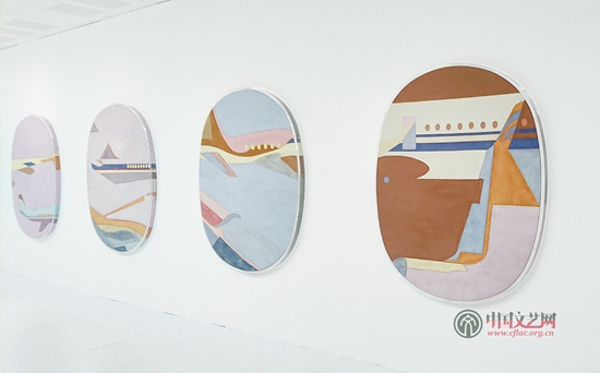 甘雨的《从远方来,到远方去》系列以机场为主题:“飞机是帮助个体与全世界连接的一个实体工具,加快了空间移动,改变了我们对时空维度的认知体验。现代化的停机坪、飞机、跑道、航站楼构成了复杂又有趣的空间关系。”戴剑舞的《心丝筑梦》系列也用岩彩表现了时代的最新元素——“我刚来北京的时候住在望京,从家里窗户向外望去,可以看到著名建筑艺术家扎哈·哈迪德设计的望京SOHO,特别是在晚上,璀璨的SOHO像一艘帆船”。扎哈·哈迪德的设计激发了戴剑舞的创作,她把方形的结构变成圆形,因为它“更有深层次的精神指涉”。