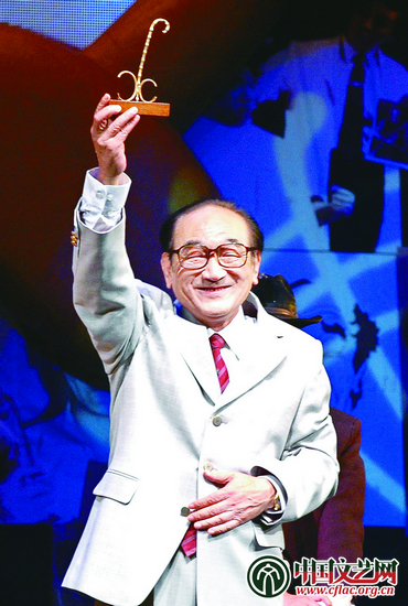 严顺开手举卓别林“金手杖奖” 祖忠人 摄