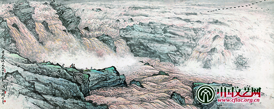 1959年,关山月与傅抱石为人民大会堂创作的巨作《江山如此多娇》,成为新中国美术史上最为著名的作品之一。这幅作品以新的视野和角度使中国山水画的境界呈现达到一个前所未有的审美高度,直接影响了20世纪下半叶的中国山水画样式。关山月不断调整笔墨形态以适应不断变化的绘画主题,将“新国画”的理念和“动为画因”的创作方式与新时代的要求有机结合起来,创作了许许多多反映社会主义建设新成就,以及祖国美丽山川的新中国画,成为新中国美术发展史中的重要时代样式。