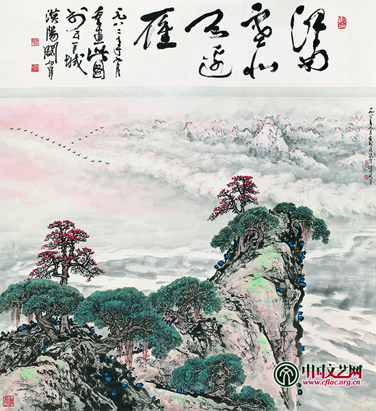 在大半个世纪的艺术生涯中,关山月始终秉承高剑父所倡导的“新国画”理念,发扬岭南画派不囿于门户、大胆兼容并蓄的精神,在继承中创新,创作了无数与时代脉搏紧紧相连的优秀作品,这些作品无论在审美意识还是在艺术成就上都将岭南画派表现时代精神的理念上升到一个更高的层次,成为中国画艺术不断求新求变的典范。正如李劲堃所说,“广大艺术家如何重构东方艺术、重构东方艺术在国际的影响,展览将给学界带来一个重要的学术指标”。