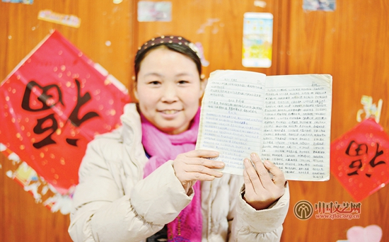 今年央视播出的《中国诗词大会》上,白茹云用一句“千磨万击还坚劲,任尔东西南北风”作为开场白,而当她讲述自己的生活经历时,许多现场观众潸然泪下。41岁的白茹云是河北省南和县郝桥镇侯西村一名普通农民。她六年前不幸罹患淋巴癌,一个弟弟因患脑瘤瘫痪在床,另一个弟弟多年前失踪。面对人生中的各种不幸,她背诵诗词上万首,从优秀传统文化中汲取力量,坚强乐观笑对人生。图为白茹云在家中展示多年来抄写的诗词。白茹云的故事生动地表明:诗歌要以人民为中心,诗歌绝不是“私歌”。 新华社发 曹国厂 摄