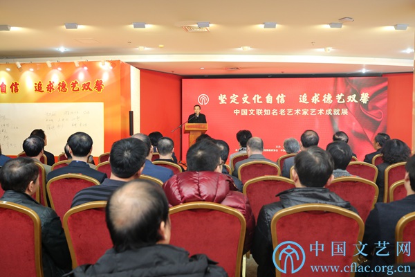12月26日,“坚定文化自信 追求德艺双馨——中国文联知名老艺术家艺术成就展”在中国文艺家之家展览馆开幕。图为开幕式现场。单鸣 摄