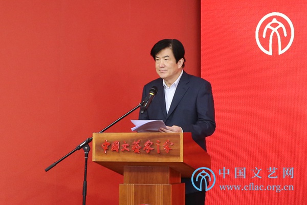 12月26日,“坚定文化自信 追求德艺双馨——中国文联知名老艺术家艺术成就展”在中国文艺家之家展览馆开幕。图为中国文联党组书记、副主席李屹致辞。邱茗 摄