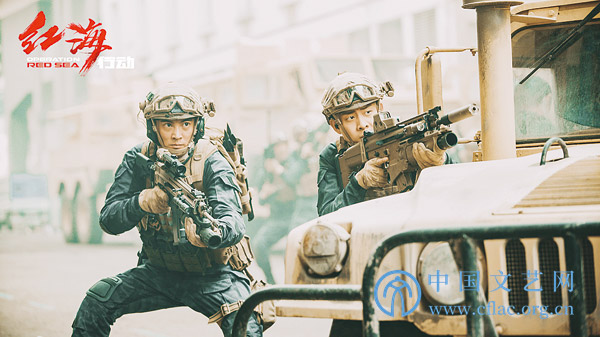 《红海行动》中街头大战的一场戏,“蛟龙突击队”战车疾驰而过时前景处闪过一个中国进出口银行的牌匾,在中国艺术报社总编辑康伟眼中,这恰是中国日益融入人类命运共同体的绝佳隐喻和生动注脚。“正是在新时代的语境中,《红海行动》才有了诞生的底气、大气和灵气,才极大地满足了新时代中国观众基于伟大复兴、大国崛起的心理期待、情感期待和审美期待。”康伟表示,《红海行动》凭借高热度、高精度、高密度、高强度乃至带有轰炸性的视觉奇观夺人眼球,在各种向度上都实现了超越,做到了极致。“影片几乎完全放弃了由幽默等艺术手段构成的‘轻’的一面,而是以纯粹的重工业手段打造而成,全程强情节、高密度,让人目不暇接、喘不过气。”