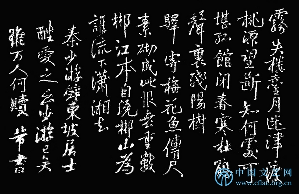 秦少游是北宋当红词人,婉约派正宗。他的《鹊桥仙》(纤云弄巧)、《满庭芳》(山抹微云)、《踏莎行》(雾失楼台)、《八六子》(倚危亭)、《千秋岁》(水边沙外)、《浣溪沙》(漠漠轻寒上小楼)等作品是广为流传的宋词经典。录《踏莎行》: