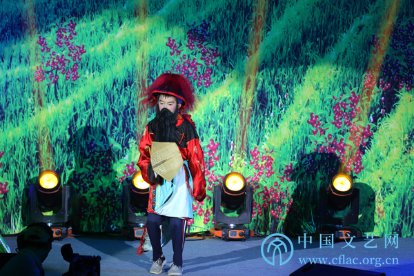 武都区鱼龙镇中心小学五年级学生杨建鹏表演高山戏《点兵》。中国文艺网 白伟 摄