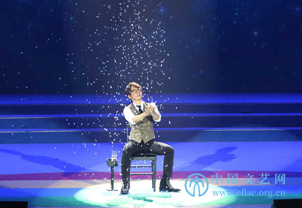 魔术表演艺术家刘谦表演魔术《心连心》。中国文艺网 白伟 摄