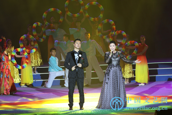 女高音歌唱家王莉、青年歌唱家师鹏演唱中国文联文艺扶贫原创歌曲《幸福的誓言》。中国文艺网 白伟 摄