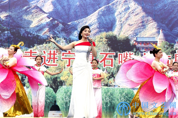为庆祝宁夏回族自治区成立60周年,8月7日至10日,中国文联文艺志愿服务团赴宁夏多地开展文艺志愿服务活动。8月8日,由中国文联、宁夏回族自治区党委宣传部、中国文艺志愿者协会主办的“中国梦·宁夏情”庆祝宁夏回族自治区成立60周年——中国文联文艺志愿服务团走进石嘴山市慰问演出在石嘴山市行政中心广场举办。图为殷秀梅演唱歌曲《不忘初心》。中国文艺网 周春桃 摄