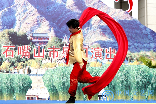 为庆祝宁夏回族自治区成立60周年,8月7日至10日,中国文联文艺志愿服务团赴宁夏多地开展文艺志愿服务活动。8月8日,由中国文联、宁夏回族自治区党委宣传部、中国文艺志愿者协会主办的“中国梦·宁夏情”庆祝宁夏回族自治区成立60周年——中国文联文艺志愿服务团走进石嘴山市慰问演出在石嘴山市行政中心广场举办。图为黄豆豆表演舞蹈《吉祥袖舞》。中国文艺网 周春桃 摄