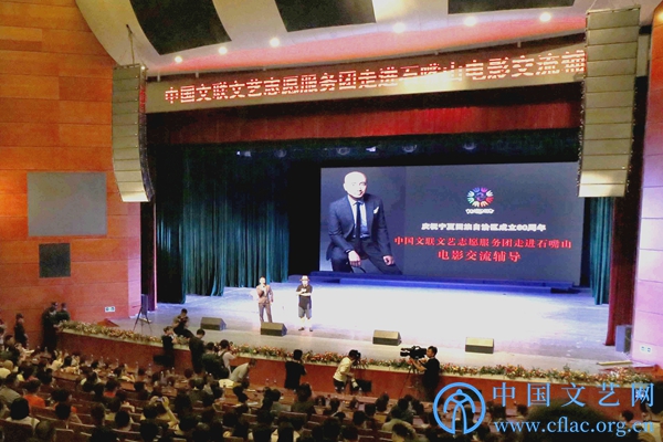 为庆祝宁夏回族自治区成立60周年,8月7日至10日,中国文联文艺志愿服务团赴宁夏多地开展文艺志愿服务活动。8月7日晚,在石嘴山市举办了书法、舞蹈、电影、电视新闻、音乐等辅导培训活动。图为演员、导演、监制徐峥主持电影辅导培训现场。中国文艺网 周春桃 摄