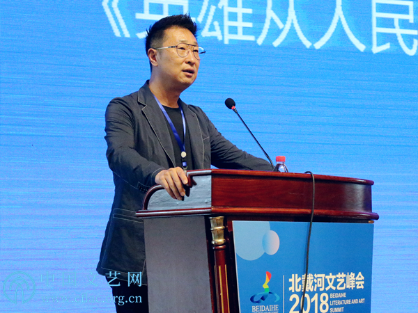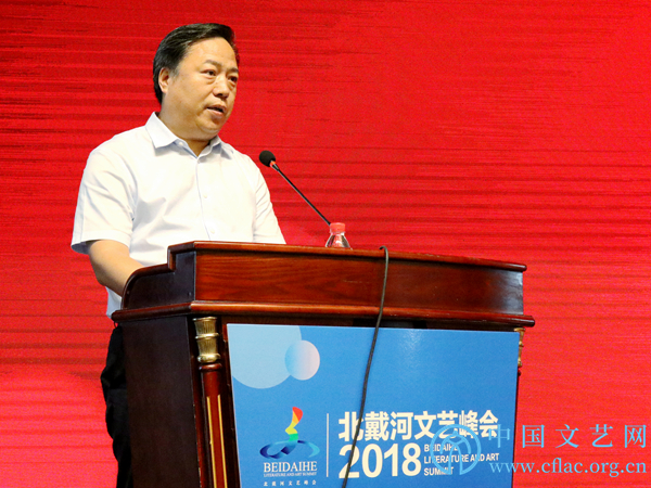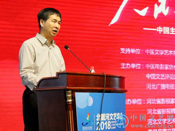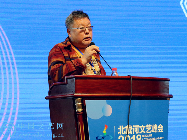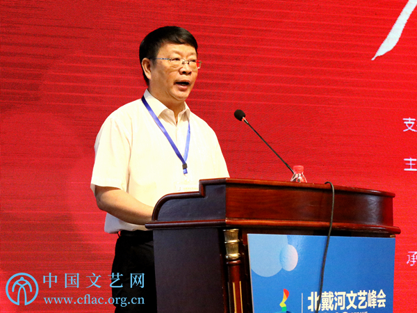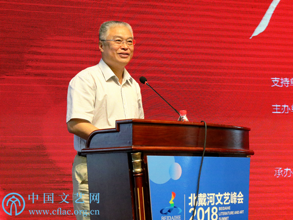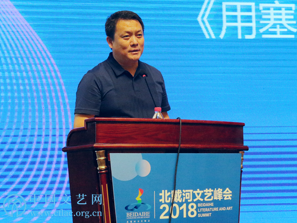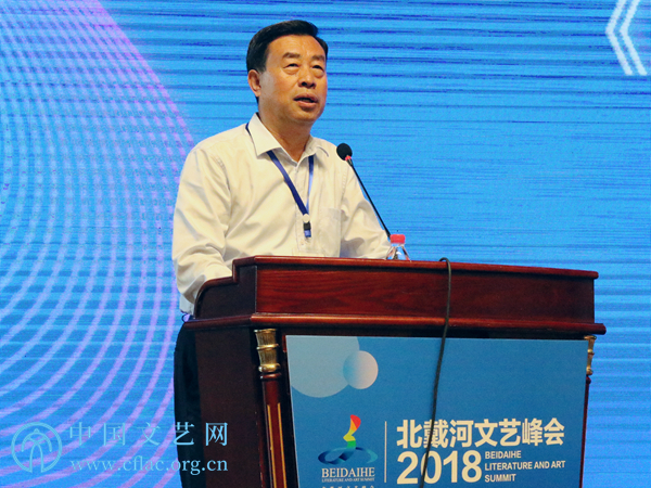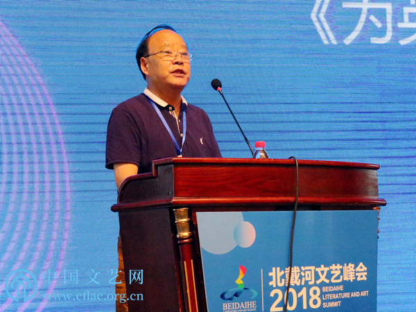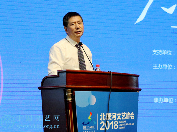 9月11日,“北戴河文艺峰会”在北戴河开幕。图为李前宽在开幕式上做题为《主旋律与艺术品格》的发言。中国文艺网 韩雪竹 摄