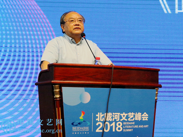 9月11日,“北戴河文艺峰会”在北戴河开幕。图为林永健在开幕式上做题为《英雄从人民中来,艺术到人民中去》的发言。中国文艺网 韩雪竹 摄