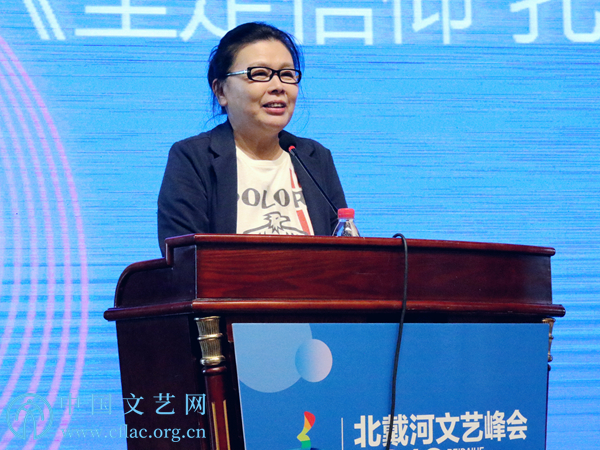 9月11日,“北戴河文艺峰会”在北戴河开幕。图为中国文联理论研究室主任、中国文联文艺评论中心主任庞井君在开幕式上主持以“人民与英雄”为主题的发言环节。中国文艺网 韩雪竹 摄