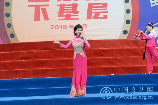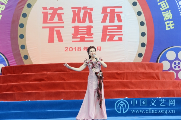 9月27日,“送欢乐·下基层”中国电影家协会文艺志愿服务团走进陕西清涧县慰问演出成功举办。图为吕薇演唱歌曲《走在春天路上》。