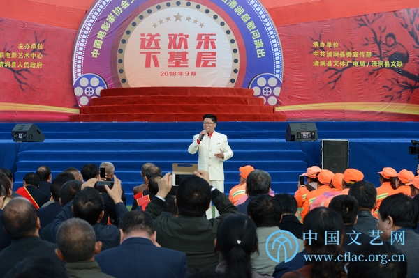 为深入贯彻习近平新时代中国特色社会主义思想和党的十九大精神,坚持“以人民为中心”的工作导向,大力弘扬“乌兰牧骑”精神,落实“文化惠民、文化乐民、文化为民”的宗旨,按照中国文联的工作部署,9月27日,由中国电影家协会、中国文联电影艺术中心、中共清涧县委、清涧县人民政府主办的“送欢乐·下基层”中国电影家协会文艺志愿服务团走进陕西清涧县慰问演出成功举办,为老区清涧的父老乡亲送来了一道文化大餐。
