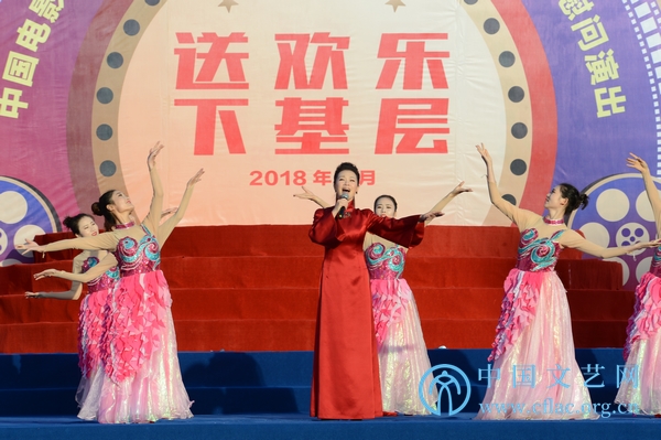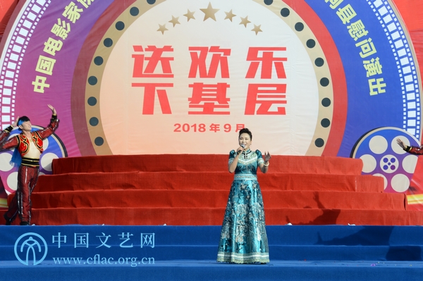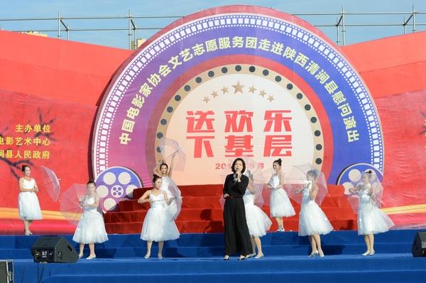 9月27日,“送欢乐·下基层”中国电影家协会文艺志愿服务团走进陕西清涧县慰问演出成功举办。图为张华敏演唱歌曲《五哥放羊》。
