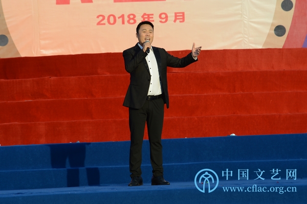 9月27日,“送欢乐·下基层”中国电影家协会文艺志愿服务团走进陕西清涧县慰问演出成功举办。图为刘大成演唱歌曲《高兴》。