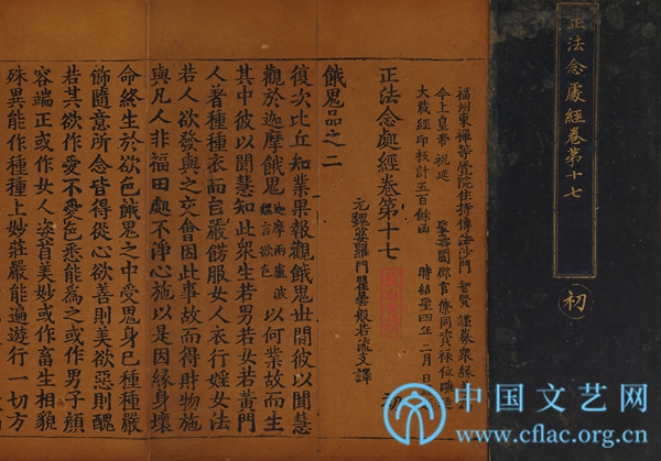 “古籍善本文献专场”佳本云集。第526号拍品为北宋福州藏《正法念处经卷》,无疑为整场拍卖会中的翘楚。此本于北宋绍圣四年(1097年)刊刻于福州东禅等觉院,经内钤盖长方形朱色“鼓山大藏”印章三方。据国家图书馆研究馆员李际宁考证,钤有此印章的经卷国内外公私所藏仅有数十册,可见存世之珍惜。