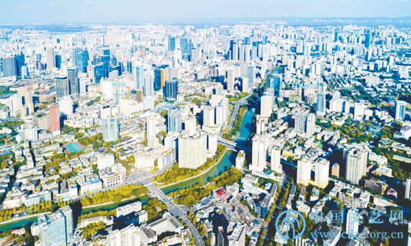 二○一八年十月,鸟瞰成都市中心城区航拍图