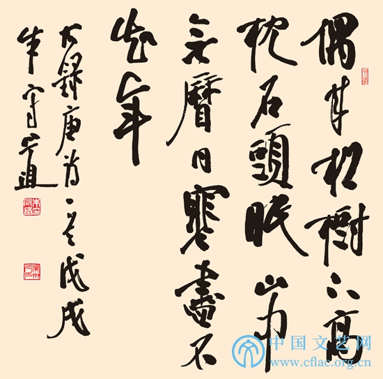 唐代孙过庭在《书谱》中曾谈道:“至如初学分布,但求平正;既知平正,务追险绝,既能险绝,复归平正。”这条规律被朱守道牢记于心。在临摹碑帖和持续创作中,他也开始在书法理论上下功夫,开始研究古代书法理论,在正变巧拙中进一步悟出自己的书法风格。孙过庭也是第一位对他有较大影响的古代书法家。“孙过庭主要强调书法应当以中和、自然为美,这与中国古代传统思想所体现的中和审美理念是一致的,孙过庭的艺术观受儒家思想文艺观影响很大,我在书法追求共性审美时也受到这种思想的感染。”受中和之美的影响,朱守道的创作更体现为一种中正、朴素之美,他不求华丽、不求险怪、不求奇诡,而在一点一面中追求中庸之道。