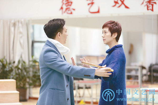 史依弘(右)在京剧《新龙门客栈》排练现场