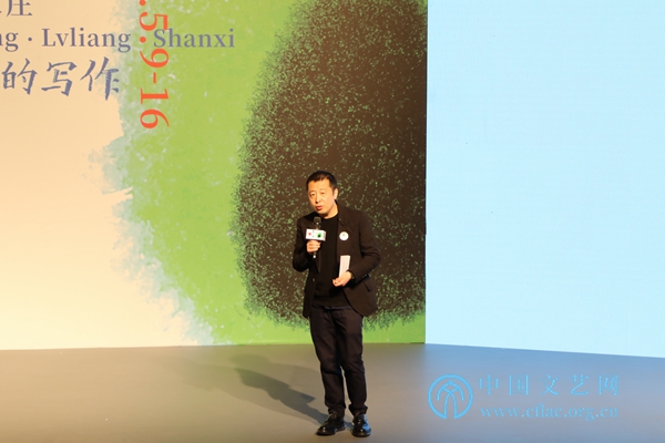 4月8日,由贾樟柯艺术中心主办的吕梁文学季新闻发布会在京举行。图为知名电影导演、吕梁文学委发起人贾樟柯在会上发言。中国文艺网 胡艳琳摄
