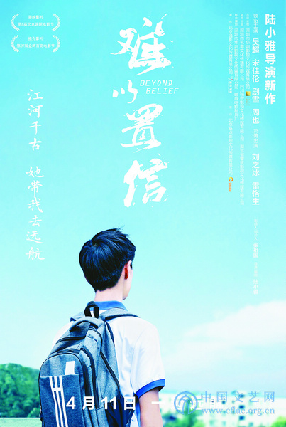 4月11日,曾执导过《红衣少女》等著名影片的“第四代”导演陆小雅的电影新作《难以置信》全国公映。影片由深圳市华圳影视文化传媒有限公司出品,北京通影文化传媒有限公司营销,陆小雅编剧并执导,吴超、宋佳伦、剧雪、周也主演,刘之冰、雷恪生、张竞达特别出演。