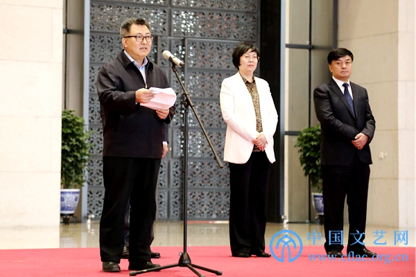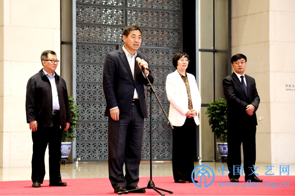 4月19日,“海岱朝宗——山东古代文物菁华”展览在中国国家博物馆开幕。图为国家文物局副局长关强宣布展览开幕。中国文艺网 高森摄