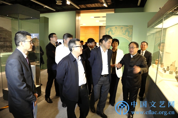 4月19日,“海岱朝宗——山东古代文物菁华”展览在中国国家博物馆开幕。图为领导嘉宾参观展览。中国文艺网 高森摄