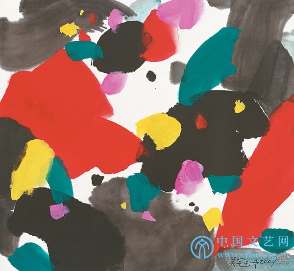 在吴冠中的抽象画探索中,很多视觉形式并非完全是由生活中得来的,还有一些是梦境、想象,或者是情绪的灵感,诸如《欢乐的梦》《天外来客》《书画缘》《恩怨》等。事实上,吴冠中一直在强调“风筝不断线”,就是艺术创作不能远离现实生活,在抽象艺术探索的过程中,要注意不能完全抽象。造化与心源、物象与心象,经由他那颗纯真之心的提炼与升华,成为永恒的艺术之美。