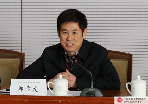 郑希友在开班动员中表示,近几年是中国文联干部队伍进入新老交替较多的年份,有相当一部分老同志到达最高任职年龄,有很多新同志进入文联系统工作,近三年新到文联工作的干部有120多人。举办这次新进文联工作人员培训班,目的是为了让大家尽快熟悉适应工作环境,掌握文联工作的内容、特点和规律,把准角色定位,提高能力素质,推动工作开展。郑希友强调,希望大家通过培训,对文联的工作性质、职能定位有更清楚的认识,进一步增强做好文联工作的光荣感、责任感、使命感;对自身的岗位职责有更明确的把握,进一步增强做好文联工作的针对性、有效性、实效性;不断提升自身的能力素质,进一步增强做好文联工作的家国情怀、文艺情怀、文联情怀。郑希友表示,现在文联和各单位的工作任务都很重,把大家集中起来专门拿出6天时间学习,机会难得,充分体现了文联党组下大力气提高干部素质的决心和对干部政治上的关爱。这次培训,文联人事部和研修院下了很大功夫,在培训形式、培训内容和交流方法等多方面都进行了精心设计和安排。最后,郑希友说:“希望大家珍惜这次学习培训的机会,以严谨的学习态度、饱满的学习热情,积极投入,专心致志,力求在较短的时间里取得较大的收获。一是要集中精力,排除干扰;二是要认真研讨,广泛交流;三是要遵规守纪,严格要求。希望广大年轻干部打起精神,认真学习,努力工作,以诚待人,文联事业的发展需要你们去创造辉煌!”