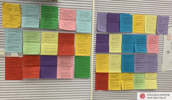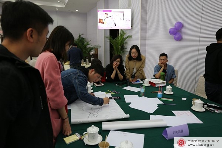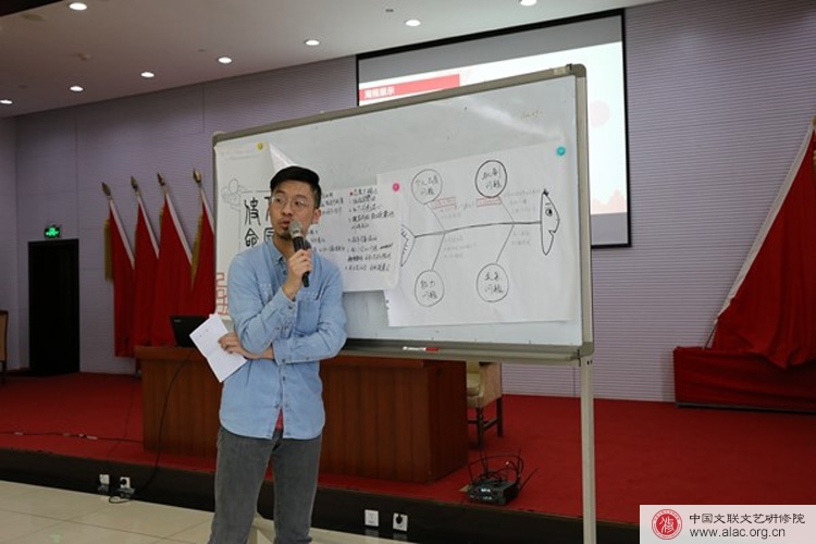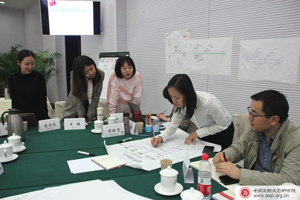 当日下午,中国文联新进工作人员初任培训班进行了一堂别样的互动课程——中国文联文艺研修院行动学习法课题组成员石琳带领学员围绕沟通与协调这一主题,开展“世界咖啡”与“结构化讨论”授课。课程共分为4个部分:导入环节、结构化研讨、交流分享、收尾总结。在向学员们介绍完“世界咖啡”的定义和起源、应用范围、基本流程等问题后,石琳为学员准备了与上级沟通、与平级沟通、与艺术家沟通、对外沟通、与家人沟通等五个研讨主题,让学员自由选择感兴趣的话题组成5个讨论小组,由各组组员经过共同商讨选出组长,同时根据不同研讨主题想出有趣的“别名”——“红色的回忆”组、“不辱使命”组、“德艺双馨”组、“Why not?咖啡”组、“浪漫满屋”组。在设计制作主题海报环节中,各组学员集思广益,贡献出一幅幅别具内涵且有创意的海报。随后,各小组针对各自研讨主题运用头脑风暴法、团队列名法、鱼骨图法等结构化研讨工具,在一轮一轮的“世界漫游”中,聚焦问题,查找原因、研究对策,最后由组长进行交流分享。在这一过程中,通过限定时间内的思考,学员们直面各种沟通问题,对相关常见问题背后的产生原因及解决思路进行了深刻剖析。在交流与思考中,学员们的思维不断碰撞出火花,有严肃讨论,也有欢声笑语,现场好不热闹。热闹的现场一直延续到了沟通与协调情景模拟教学演练。当晚,在中国文联文艺研修院干部培训处处长王之茵的引导下,各小组针对组内讨论出的主要问题及解决方法进行了情景模拟的剧本准备、角色安排等,同时,各小组将在之后几天的培训中进行行动学习情景模拟教学竞赛——沟通与协调困惑呈现及深度汇谈、行动学习情景模拟竞赛——沟通与协调困惑解决方案。