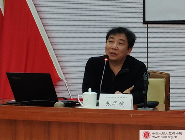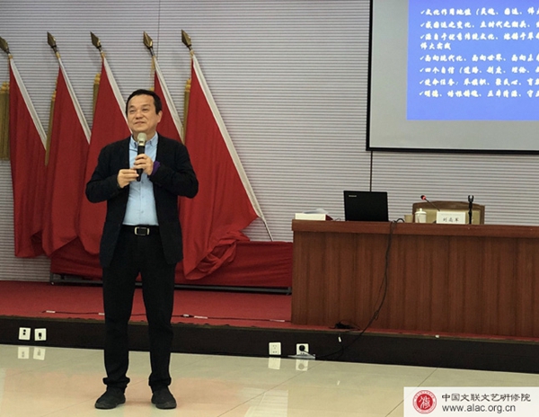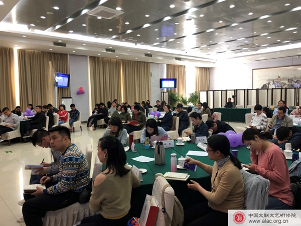 4月16日上午,中国文联国内联络部主任刘尚军和北京市通州区文联主席樊淑玲分别就中国文联和地方文联的基本情况进行了介绍,并与培训学员进行了互动交流。在以“机遇与挑战:深化改革中文联协会工作初探”为题的授课中,刘尚军向学员们介绍了习近平总书记关于文艺工作的重要论述,同时介绍了中国文联组织和文联工作的基本情况。他表示,新时代文艺工作应该统一思想、凝心聚力,中国文联应该做好联络协调、团结引领文艺工作者的工作,积极为文艺工作者服务。同时,刘尚军介绍了中国文联深化改革工作,指出文联改革工作应坚持以人民为中心的总方向,加强组织的政治性、先进性和群众性,增强组织活力、组织向心力、组织吸引力和行业影响力,加强文艺队伍建设和行业行风建设,引导推动文艺创作。樊淑玲则就北京城市副中心——通州的文联组织和工作情况进行了介绍。樊淑玲表示,基层文联应利用好当地的文艺资源和历史资源,“小天地应做出大文章”。通州区文联坚持“街乡吹哨 部门报道”,举办“送文化进万家”等文艺惠民活动,使文艺服务工作深入社区;同时,通州区文联还广泛联系文艺工作者,为其提供艺术创作和生活上的帮助,做好服务工作。樊淑玲还特别介绍了位于通州的著名艺术社区宋庄的发展历程及其原创艺术和文化产业的发展,并介绍了宋庄的未来规划