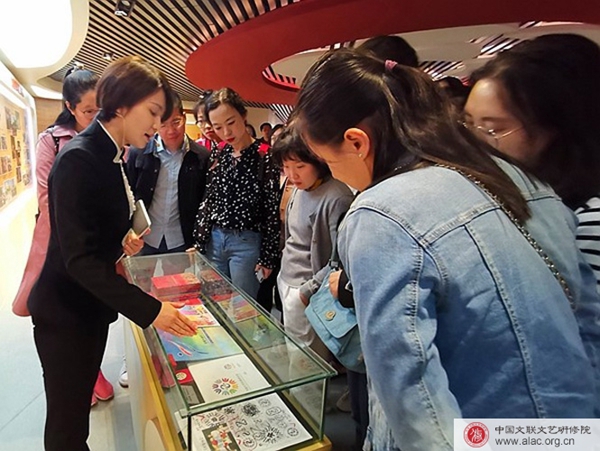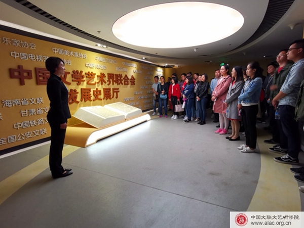 讲解员向学员们介绍中国文艺志愿者协会相关资料