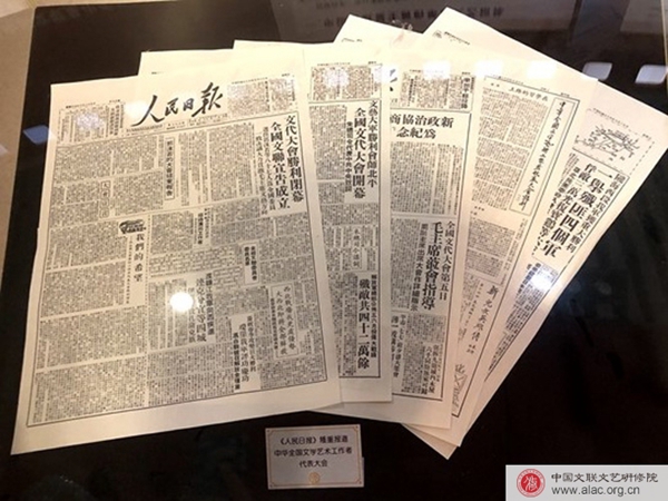 出版于1949年7月20日的《人民日报》隆重刊登中华全国文学艺术工作者代表大会举行的新闻