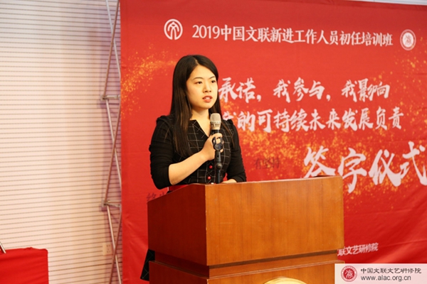 4月19日下午,中国文联新进工作人员初任培训班举行以“有梦想、有实干、有坚持,终生学习,不断提高工作生活能力,敬岗爱业、不忘初心、永葆赤子之心”为主题的班会暨讲演比赛,并开展了“我承诺、我参与、我影响并为我的可持续未来发展负责”签字仪式。中国文联人事部副主任岳颖、中国文联文艺研修院副院长李洪伟等领导出席并担任讲演比赛评委。讲演分别由中国曲协外联处徐哲作了题为《爱岗敬业、不忘初心、永葆赤子之心》主题演讲,中国文联出版社重大项目部祝琳华作了《终身学习 不断提高工作生活能力》主题演讲,中国书协办公室郭浩东作了《重拾阅读 终身学习》主题演讲,中国文联摄影艺术中心综合处李晓栋、中国美协会员工作处孙晓璐、中国视协《当代电视》杂志社王未然、文联离退休干部局办公室黄梦媛作了《梦在前方,路在脚下,坚持在心中》主题演讲,中国文联曲艺艺术中心教育培训处乐璠作了《不忘初心跟你走》主题演讲。讲演比赛主题鲜明,激发了学员们的爱国情感,鼓励大家有梦想、有实干、有坚持,终生学习,不断提高工作生活能力,敬岗爱业、不忘初心、永葆赤子之心,也为中国文联年轻干部职工增强了“向心力”,为创建团结奋进、友爱和谐的工作环境发挥了重要作用。班会结束后,学员们在“中国文联新进工作人员初任培训班——我承诺,我参与,我影响并为我的可持续未来发展负责”承诺书签字板上签上自己的姓名并合影留念,把在培训班上凝聚的“文联情”定格在这一刻。