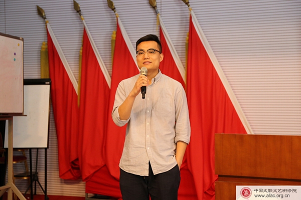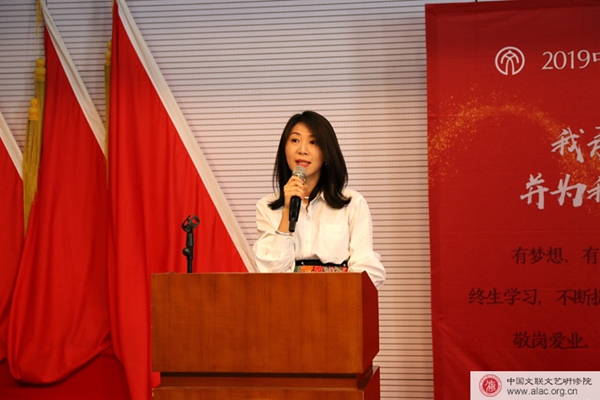 十九大代表、中国美术家协会人事处处长张潇羽作为文联系统优秀年轻干部代表,与学员分享了自己的工作体会。“从平凡中发现伟大,质朴中发现高尚。有质量、有筋骨的美术作品要全面反映中国的风貌,彰显东方艺术的独特魅力。”张潇羽用大量珍贵的美术作品和音视频资料为现场学员展示了一批中国近现代优秀美术作品,强调新时代文艺工作者要有信仰、有担当。同时,作为一名文联系统的优秀年轻干部,张潇羽从职责、创新、信仰等多个角度分享了自己的“青年观”:与时俱进,做勤于学习的模范;不辱使命,做履职尽责的模范;实事求是,做求真务实的模范;以身作则,做严守纪律的模范。在最后的导师寄语环节,张潇羽给中国文联新进工作人员留下了“带着梦想上路,仰望星空;收起翅膀前进,脚踏实地”的真挚寄语。