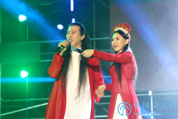 5月26日,“走进美丽兴化·礼赞伟大时代”中国电影家协会文艺志愿服务团慰问演出活动在江苏省兴化市举办。图为臧金生、王菁华表演诗朗诵《放歌文正》。中国文艺网 张钰童 摄